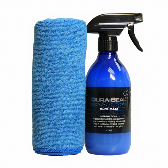 Dura-Seal Q-Clean is available in ready to use 1L. size or in 5L and 475 ready to use sizes. Simply spray Dura-Seal Q-Clean liberally on the painted surfaces and wipe with a clean plush microfiber towel. The substantive polymers encapsulate the dirt and grime to protect the paint from marring while lubricating and bonding to the painted and other automotive surfaces to provide greater protection while leaving a slick glossy finish behind.