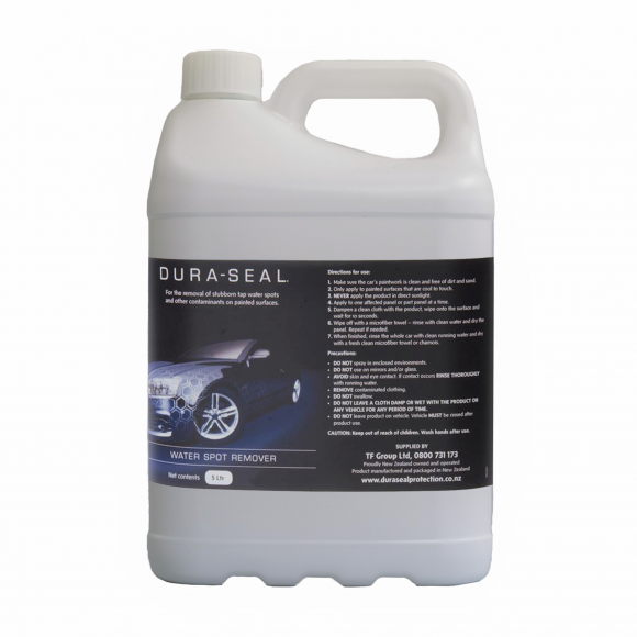 The Dura-Seal Water Spot Remover (5L) is a powerful solution designed to eliminate the stubborn water spots caused by tap and bore water. These spots occur when minerals, such as calcium and magnesium, found in hard water, are left behind on your vehicle’s surface after washing. Over time, these mineral deposits can etch into the paint, leading to permanent damage if not addressed promptly.